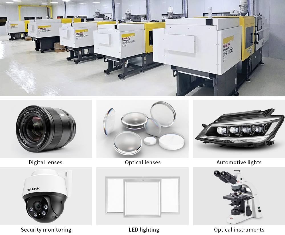 Automotive Optical Components:Applied in headlamp lenses, in-vehicle cameras, and HUD (Head-Up Display) systems, delivering superior precision and reliability for automotive vision applications.