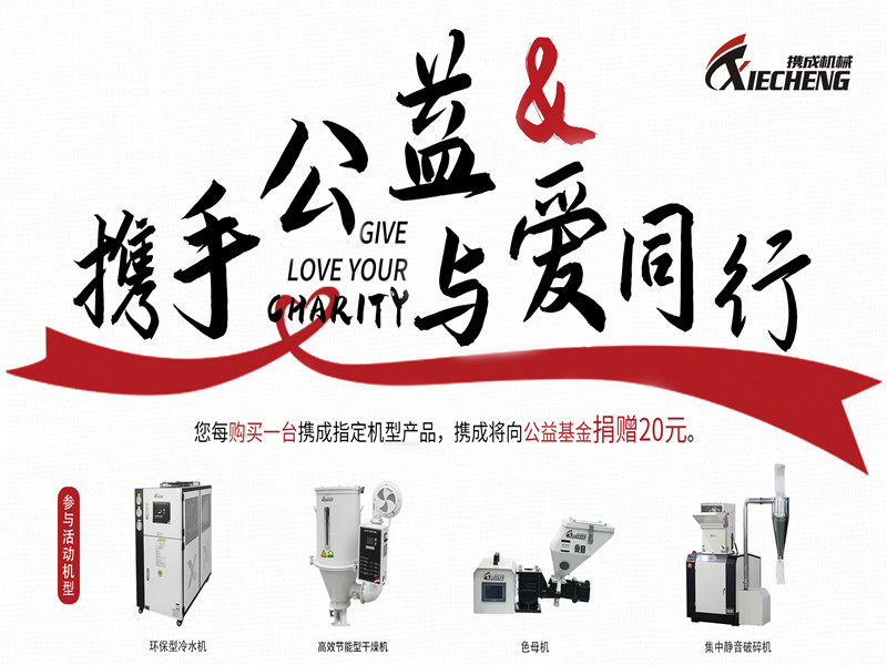 Our company's independent research and development, production and sales of high-efficiency and energy-saving dryers, environmentally friendly chillers, color masterbatch machines and centralized silent crusher four products participated in this \"public welfare baby\" charity donation activity. Jiangmen Xiecheng Machinery Co., Ltd. promised to donate 20 yuan to the account of the Wuyi Green Bud Fund of Jiangmen Charity Association for every successful sale of more than one product.