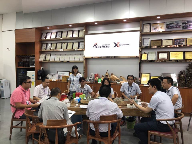 Mr. Lu Xiaoxing Lu introduced that since the establishment of Jiangmen Xiecheng Machinery, it has been focusing on the R&D, manufacturing and sales of high-end industrial refrigeration equipment and plastic molding auxiliary equipment. The quality of cash is used in the whole process of product design, production, inspection and service. The management system has been strictly controlled, won the title of national high-tech enterprise, and has more than 100 free patents. At the same time, we also introduced the core technology of our new project \"Bus Central Feeding System\" and the basic situation of the project implementation.