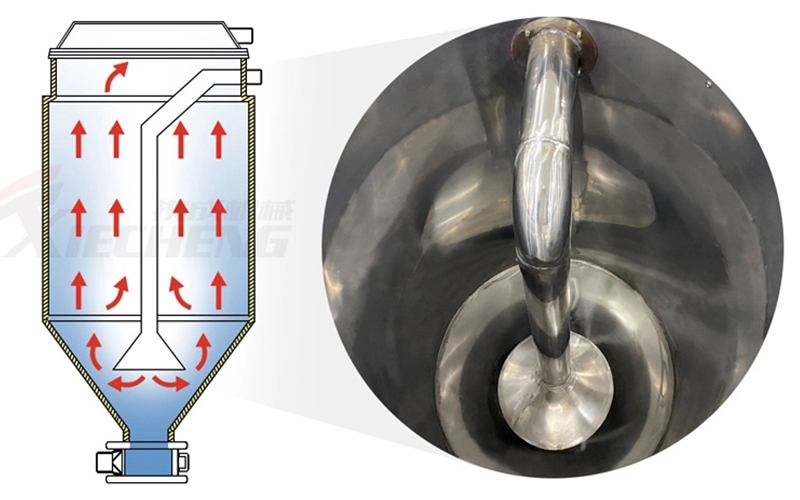 1. Hot air down-blowing design ensures even distribution of hot air to maintain a steady temperature in the hopper and increase drying efficiency;