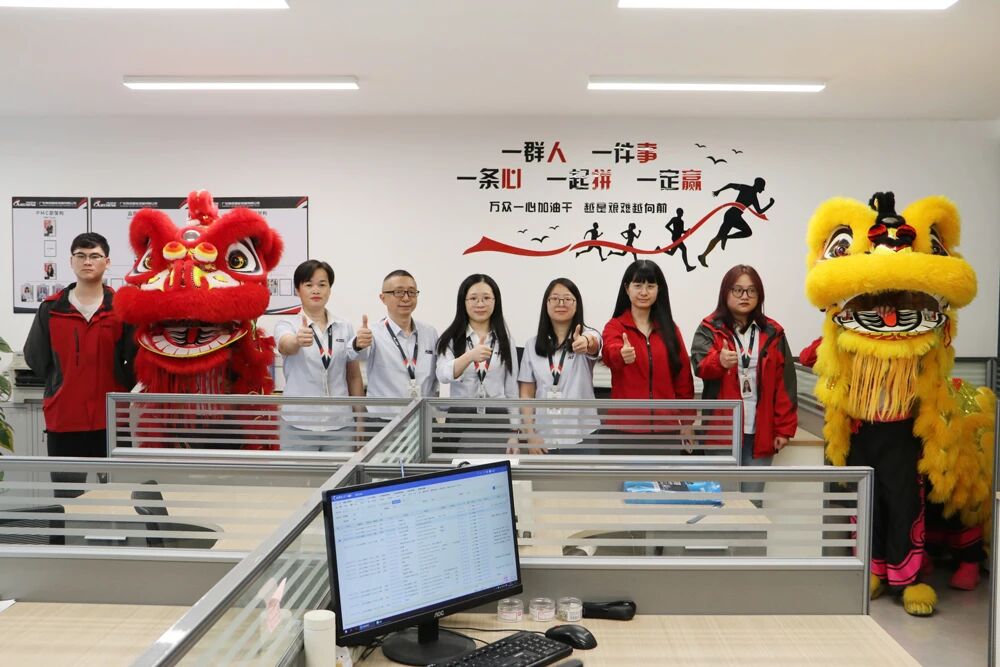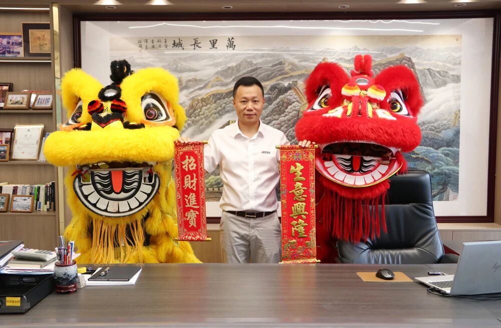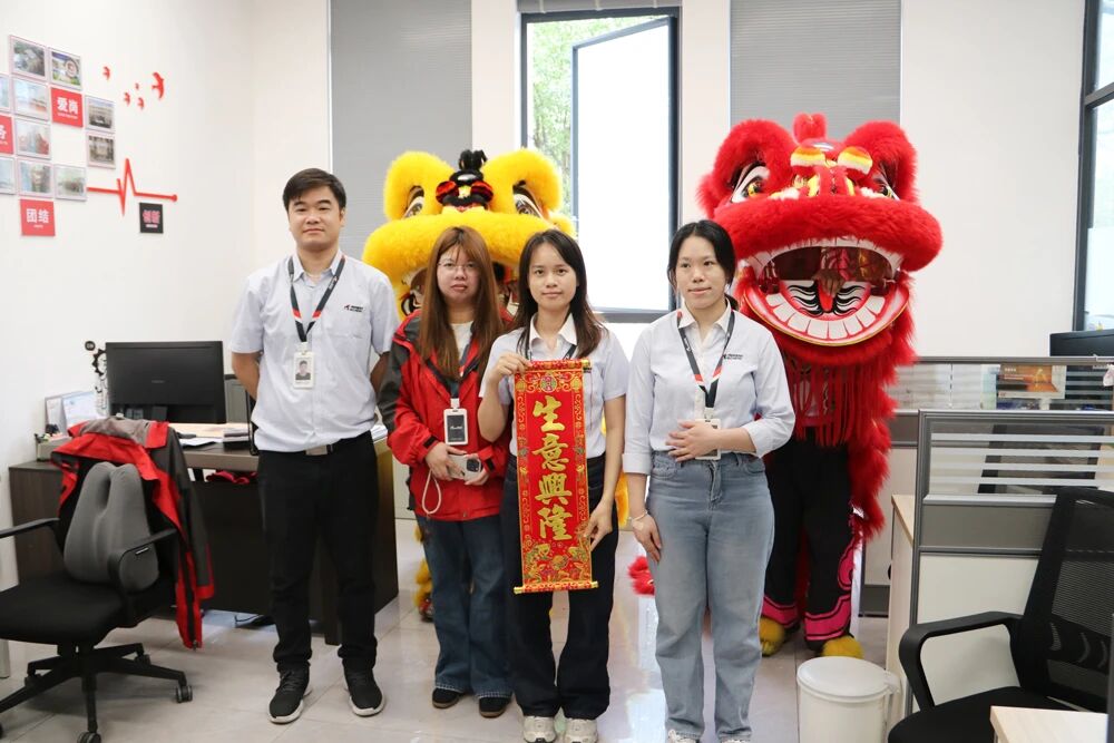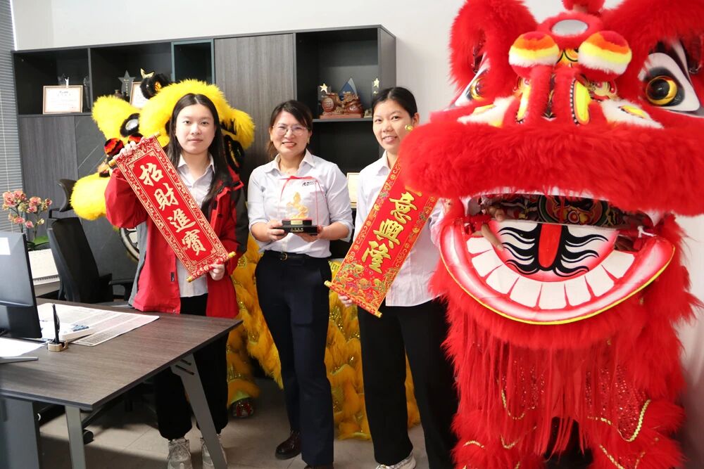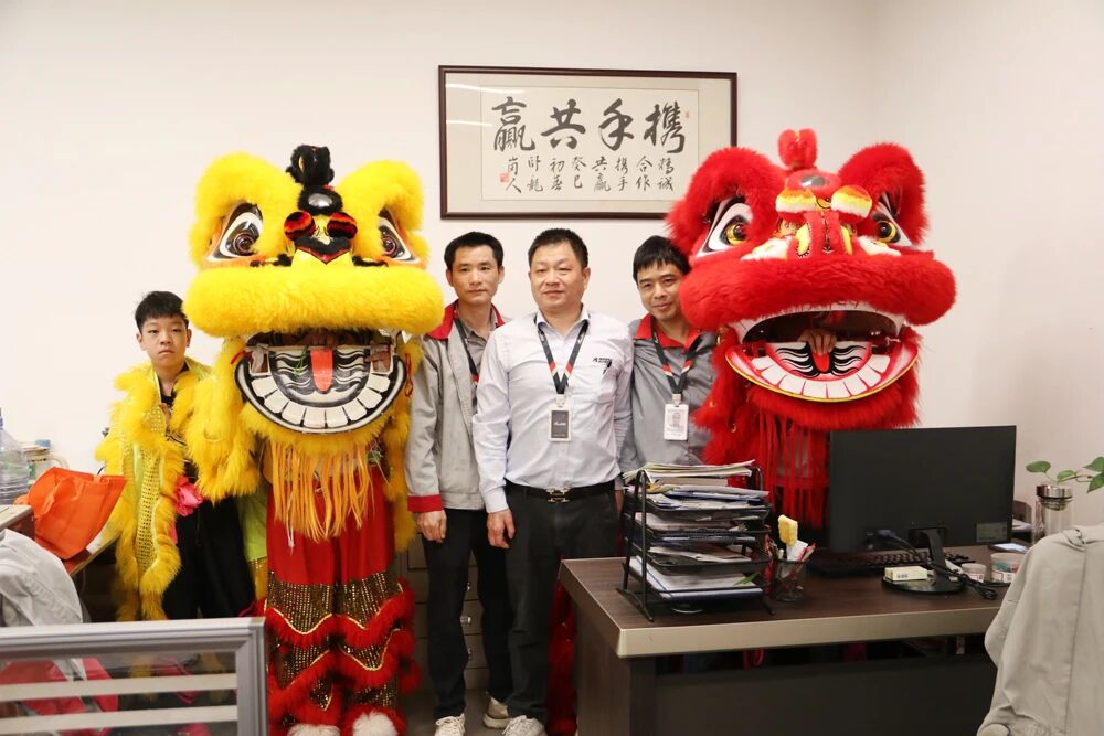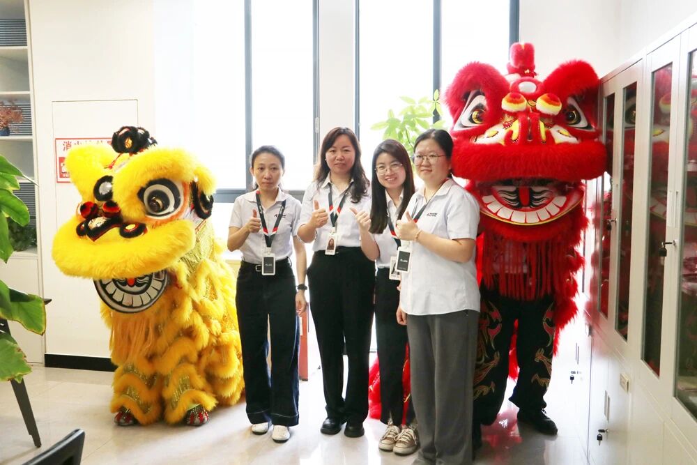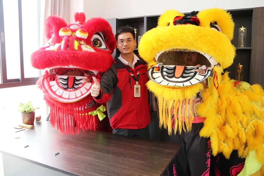 The lions leapt energetically to the rhythm of resounding drums, moving gracefully throughout the company campus—from office buildings to production workshops—filling every corner with joy and festive spirit.